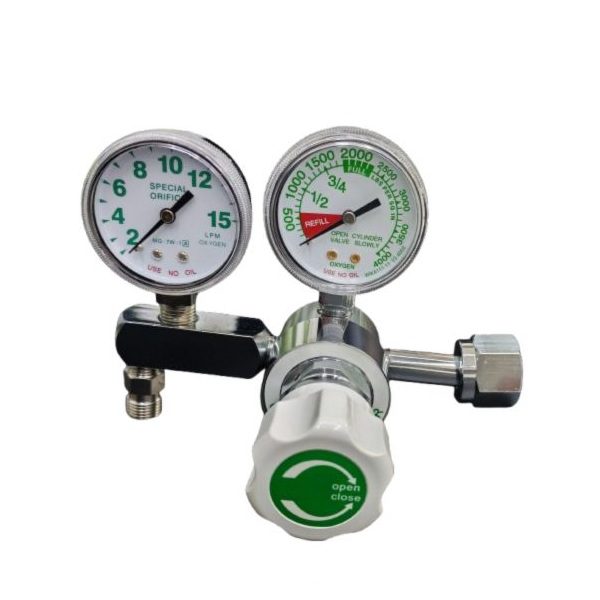 Fabricado con un cuerpo metálico robusto y perillas de ajuste ergonómico, garantiza una larga vida útil y una operación sencilla incluso en situaciones de emergencia. La conexión CGA 540 es el estándar de seguridad para tanques de oxígeno de tamaño grande, asegurando un acople hermético y libre de fugas.