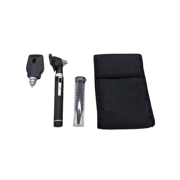 Este producto es un set de diagnóstico dual (otoscopio y oftalmoscopio), destacando por su iluminación LED blanca y sistema de fibra óptica que evita sombras. Es una herramienta de grado médico profesional para exámenes físicos de oído y ojo.”